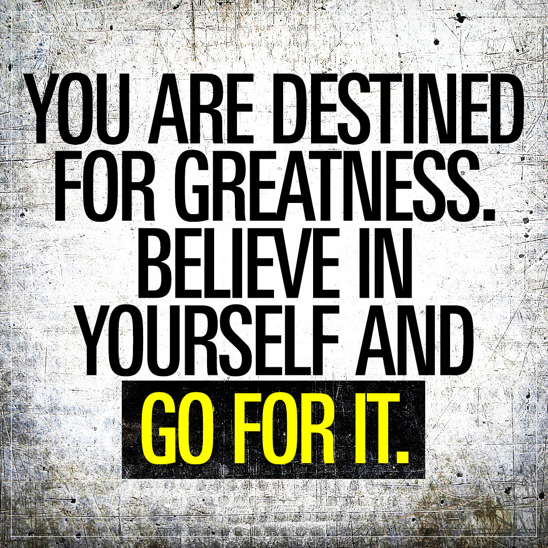 You are destined for greatness! I believe in myself! Make sure you believe in yourself as well!