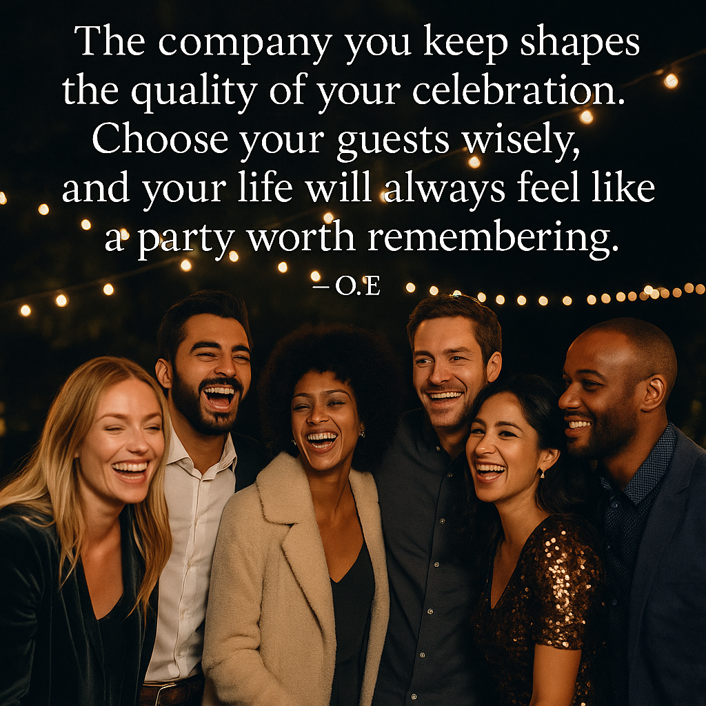 Choose your party guests wisely, for they are the ones who turn life’s moments into lasting memories. The company you keep shapes the quality of your celebration. Choose your guests wisely and your life will always feel like a party worth remembering.